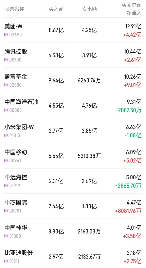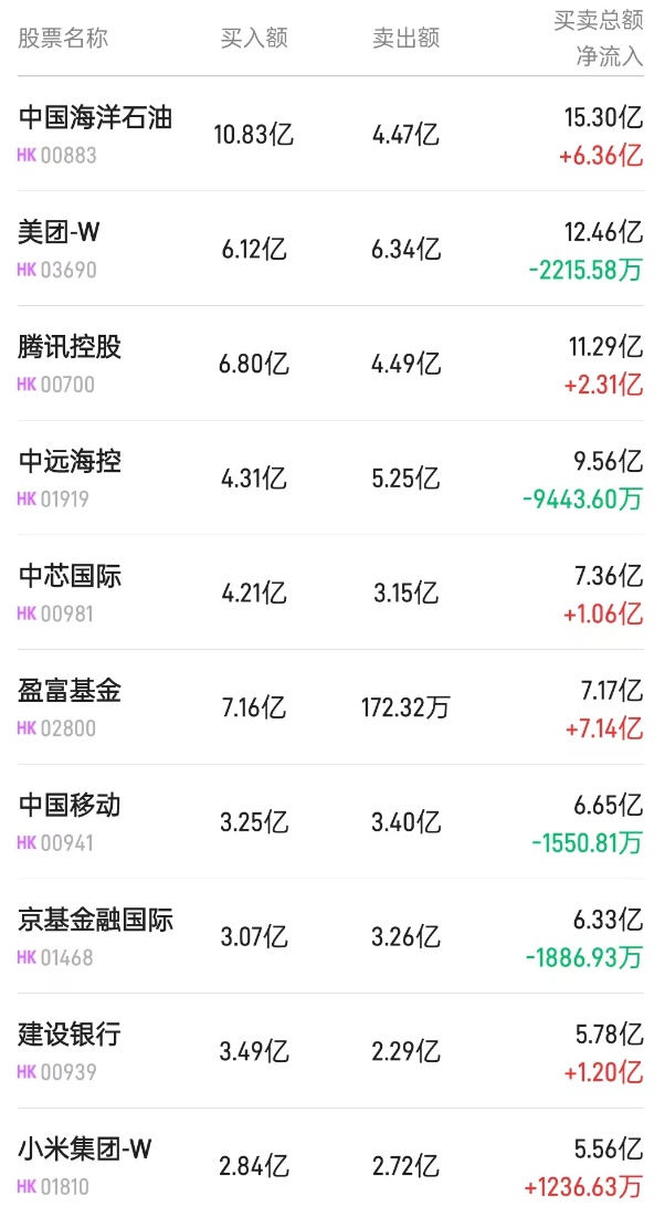 中海油(00883)获净买入6.14亿港元。消息面上,申万宏源指出,近期OPEC+会议的减产计划基本符合市场预期,但由于给出了增产方案,短期油价受悲观情绪影响有一定下跌。增产是否真正实施需要关注后续原油基本面的表现。油价高位震荡下,坚定看好上游高股息标的。摩根大通分析师则认为,国际油价最近的回落只是暂时的,未来几个月随着需求上升,油价将重新走高。
