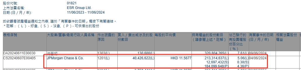 智通财经APP获悉,香港联交所最新资料显示,6月4日,小摩减持ESR(01821)4042.6622万股,每股作价11.5677港元,总金额约为4.68亿港元。减持后最新持股数目为2.13亿股,最新持股比例为5.06%。