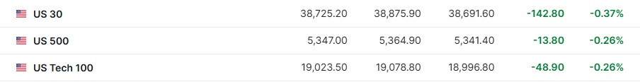 1. 6月11日(周二)美股盘前,美股三大股指期货齐跌。截至发稿,道指期货跌0.37%,标普500指数期货跌0.26%,纳指期货跌0.26%。
