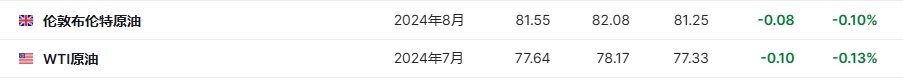 3. 截至发稿,WTI原油跌0.13%,报77.64美元/桶。布伦特原油跌0.10%,报81.55美元/桶。