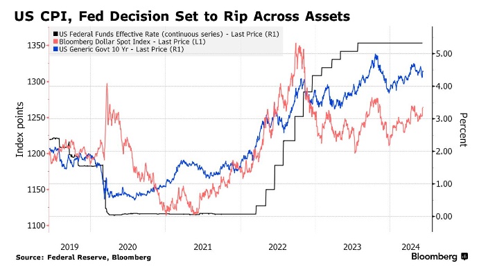 过去一年,市场对美联储利率走势的预期起伏不定,掉期交易员大幅削减了对美联储降息次数的押注,从2024年初的六次以上下调至接近一次。这导致了美国国债的抛售和美元的反弹,同时令日元等亚洲货币承压。