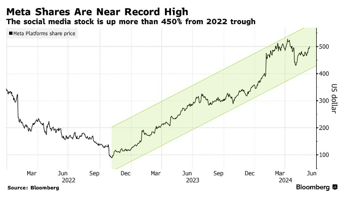 Meta是所谓的“七巨头”中唯一一只从未拆分过股票的公司。而且,尽管该股已从4月份创下的历史高点回落,但目前仍较2022年的低谷上涨了450%以上。