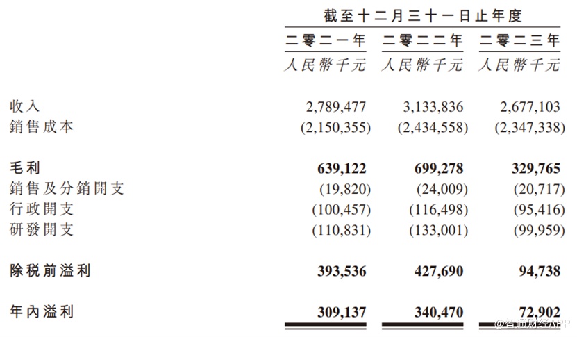 据智通财经APP了解,2023年公司的收入及净利均出现明显下滑迹象。截至2021年、2022年及2023年12月31日止年度,公司分别产生收入27.9亿元、31.34亿元及26.77亿元(单位为人民币,下同),同期分别产生纯利3.09亿元、3.41亿元及7290万元。