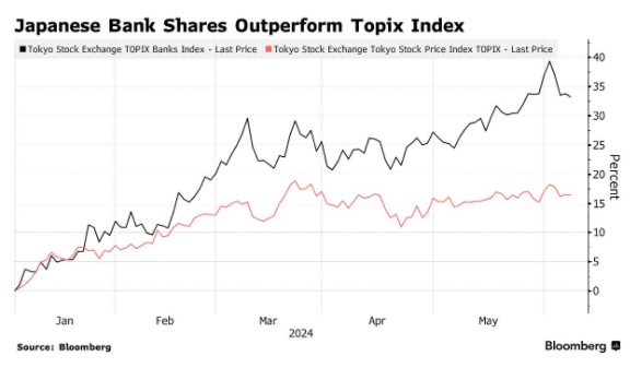 日本金融公司受益于日本央行放弃超宽松货币政策的举措,因为较高的借贷成本有助于提高贷款利润率和投资回报。并且,日本各银行顺应政府提高股东收益的努力,宣布了股票回购计划,解除了与其他公司的交叉持股,同时还提高了股息。