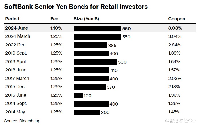 Bloomberg汇编的数据显示,软银的承销费仍是今年其他零售债券平均承销费的两倍多。