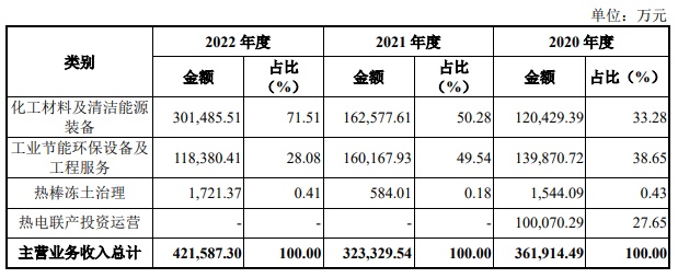 据招股书,中圣科技一直致力于化工、多晶硅、LNG、冶金等领域高端装备的研发、生产和销售。公司已完成下游领域众多关键装备的国产化研制,达到国内外先进水平。除中国以外,公司产品成功销往亚洲、欧洲、澳洲、美国、德国等地区和国家。经多年积累,目前公司已形成化工材料及清洁能源装备、工业节能环保设备及工程服务、热棒冻土治理产品为主的业务矩阵,可为下游众多领域提供定制化产品和服务。