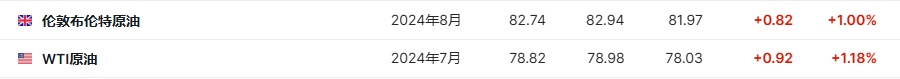 3. 截至发稿,WTI原油涨1.18%,报78.82美元/桶。布伦特原油涨1.00%,报82.74美元/桶。