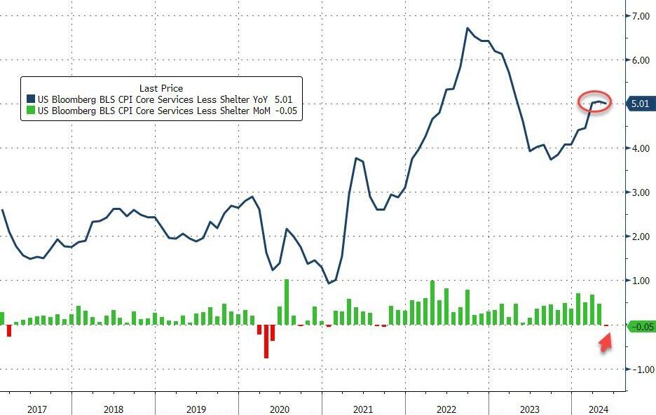 住房相关数据一直是美联储抗击通胀的症结所在,在CPI权重中占很大比重。不过,由于能源指数下降了2%,食品价格仅上涨了0.1%,通胀上涨受到了抑制。在能源板块中,天然气价格下跌3.6%。另一个令人头疼的通货膨胀因素是汽车保险,该指标的月降幅为0.1%,但按年计算仍上涨了20%以上。