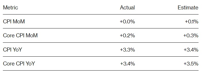 经济学家认为,核心CPI比整体CPI更能反映潜在通胀。受汽油价格下跌的拖累,该指标与上月持平,美国5月未季调CPI年率 3.3%,预期3.4%,前值3.40%,为近两年来的最低水平。美国5月季调后CPI月率 0%,预期0.1%,前值0.3%。