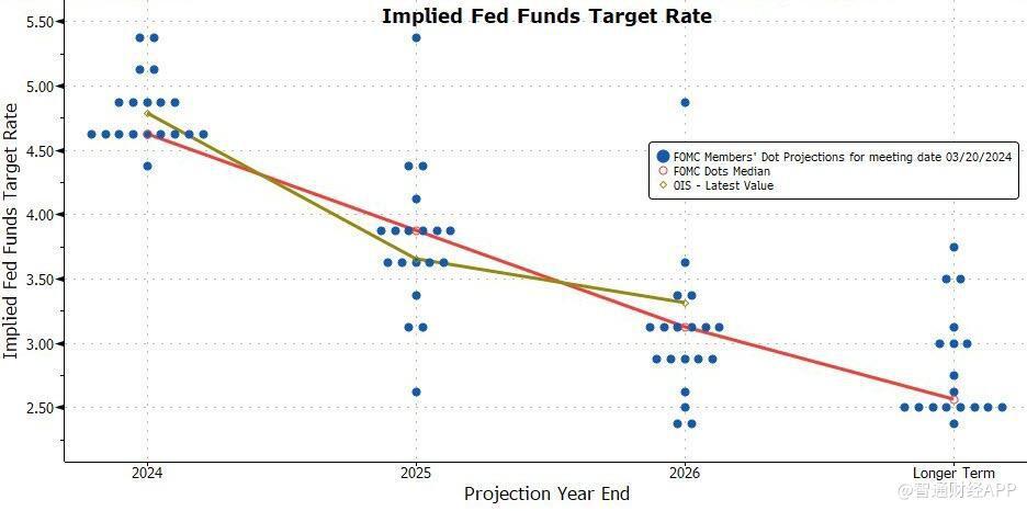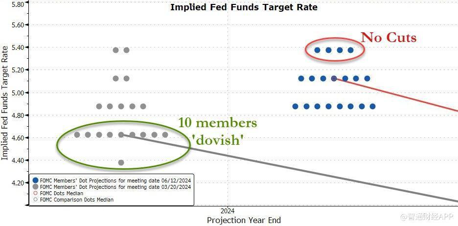 美联储的点阵图显示,预计2024年将仅降息一次,相比3月份的预测减少了两次。