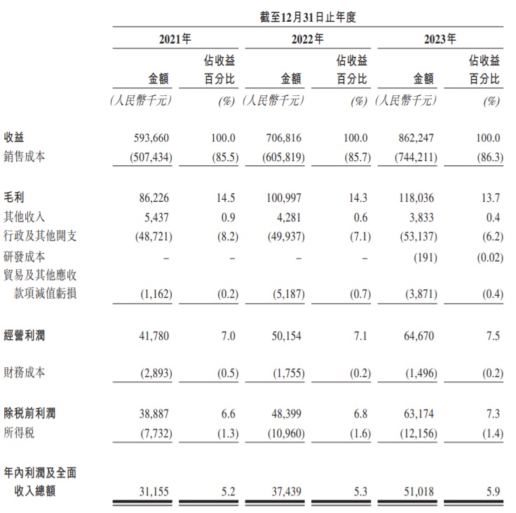 财务方面,于2021年、2022年、2023年,经发物业实现收益分别约为人民币5.94亿元、7.07亿元、8.62亿元人民币;同期年内利润及全面收入总额分别为3115.5万元、3743.9万元、5101.8万元。
