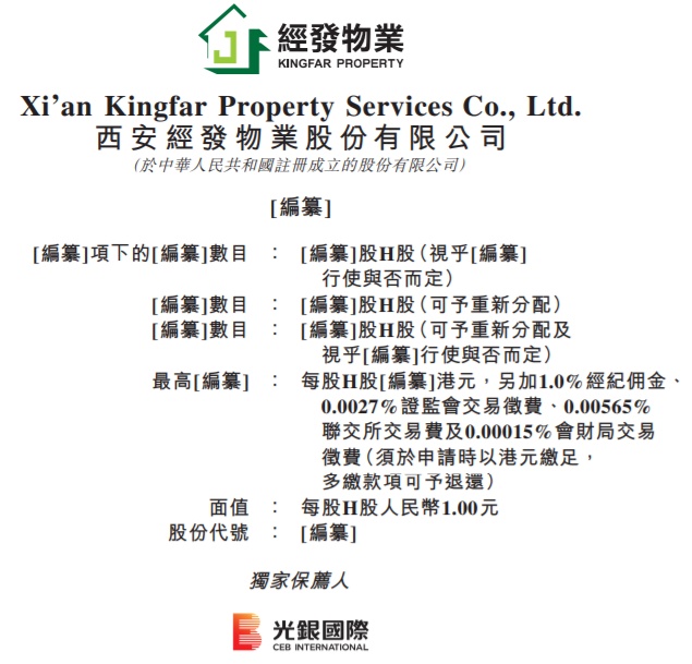 招股书显示,经发物业为一家陕西省国有综合城市服务及物业管理服务提供商,业务遍及中国西北部。经过20多年发展,公司在陕西省的城市服务及物业管理行业建立了重要的市场地位并成为知名品牌。根据中指院的资料,按截至2023年12月31日的陕西省在管建筑面积计,公司占市场份额约1.8%,于2023年在陕西省运营的物业管理服务提供商中排名第三。凭借在陕西省的市场地位,亦已将足迹扩展到中国西北部。截至最后实际可行日期,公司的业务覆盖西安、铜川、韩城及石河子。