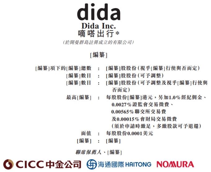 智通财经APP获悉,据港交所6月12日披露,Dida Inc.(以下简称:嘀嗒出行)通过港交所主板上市聆讯,中金公司、海通国际、野村国际为其联席保荐人。