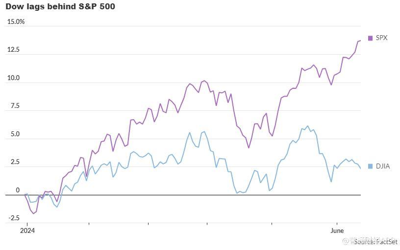 周三的差异尤为令人不安,标普500指数上涨0.85%,而道指下跌0.09%。经济学家David Rosenberg在周四的报告中指出,道指日收盘价比标普500低超过0.9个百分点的情况非常罕见。