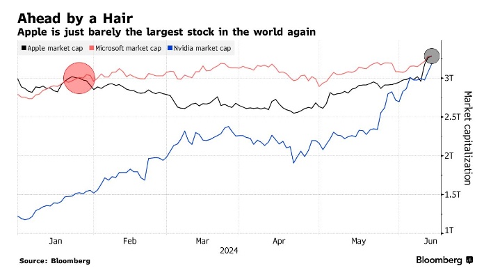 智通财经APP获悉,苹果(AAPL.US)取代微软(MSFT.US)重夺全球市值最高公司的头衔,这是投资者对其增长和人工智能地位的信心有所改善的最新迹象。