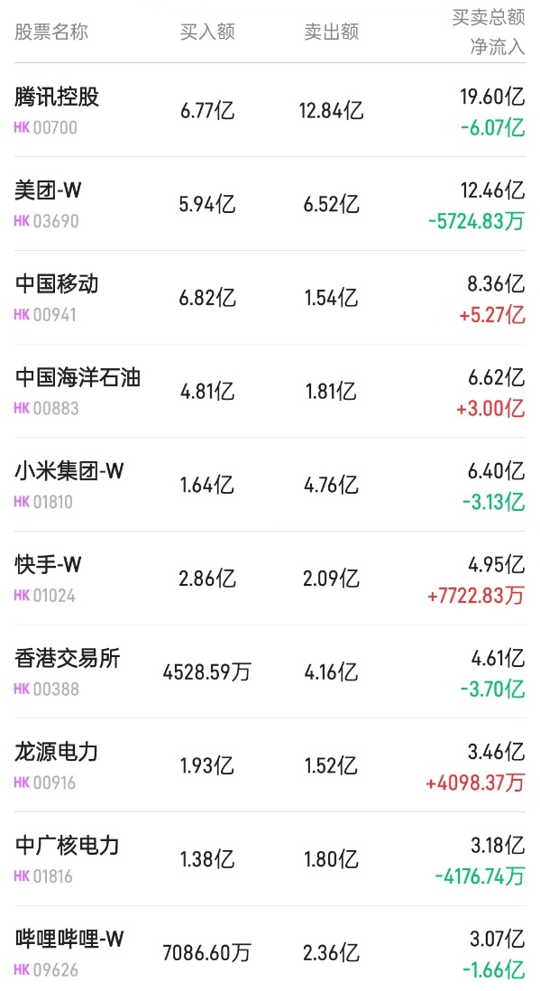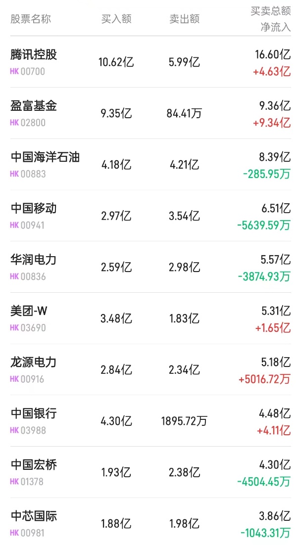 中国海油(00883)获净买入2.97亿港元。消息面上,汇丰研究发表报告指出,中国石油巨头的表现持续跑赢,年初至今累升10%至50%,相对于同期恒指累升7%,主要由于油价上升及产量稳定增长。而在目前国企改革的背景下,投资者正寻求韧性更佳的回报,该行维持对油股正面看法,因目前收益率介乎6%至7%,对境内投资者而言仍具吸引力,加上现金流强劲,可能为进一步增加股息提供潜力。