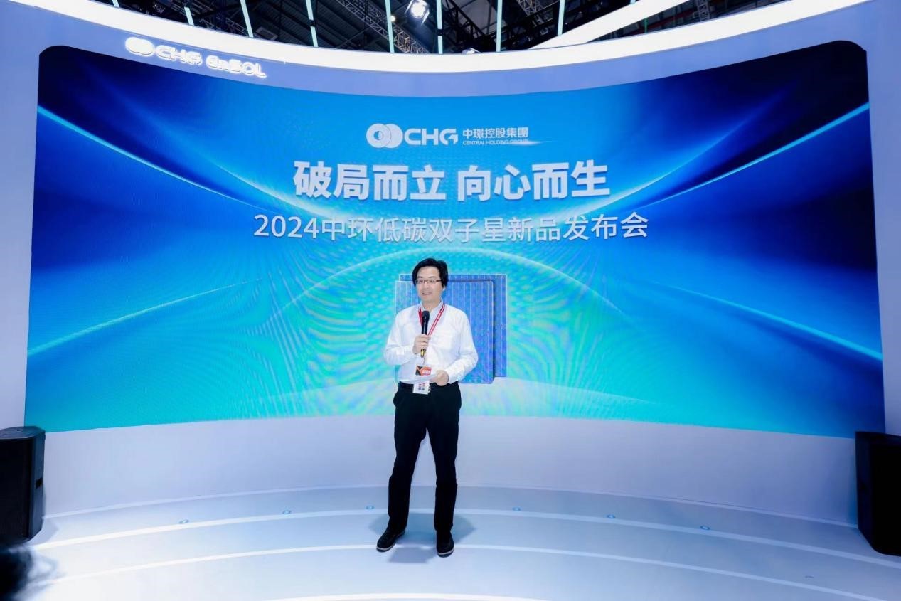 图|中环新能源控股集团副总裁、中环低碳总经理刘志锋博士进行新品介绍