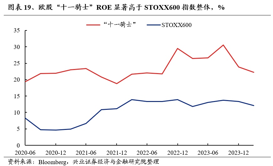 2)高ROE:即便如欧洲市场,增长乏力、缺乏高景气,但只要经济不存在系统性风险,龙头维持优势甚至“剩者为王”,依然能够凝聚共识。