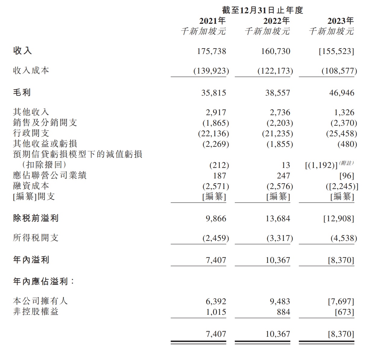 财务方面,于2021年、2022年、2023年,永康控股收入分别约为1.76亿新加坡元、1.61亿元新加坡元、1.56亿新加坡元,相应期间年内利润分别约为740.7万新加坡元、1036.7万新加坡元、837万新加坡元。