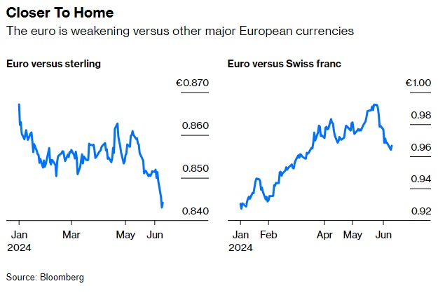 但对货币市场动态影响更深远的可能是英国与法国在政治稳定问题上互换位置。英国反对党工党有望在 7 月 4 日赢得多数席位,投资者认为自 2016 年英国脱欧公投以来,英国政府经历了八年的动荡,而工党有望迎来五年或更长时间的稳定执政。如果从下个月开始,法国要忍受与马克龙不同党派、财政理念不同的总理共存,这将是一次戏剧性的角色转换。法国财政部长布鲁诺·勒梅尔上周五暗示,选举后他可能不会留任。