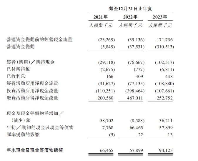 现金流为负值,与贸易应收款项及存货居高不下有关。报告期内,公司贸易应收款项、应收票据及其他应收款项及预付款项总额分别为1.25亿元、1.09亿元及3.22亿元,2023年公司贸易应收款项总额激增。同期公司贸易应收款项周转天数分别为65天、37天及81天。根据招股书的说明,如果未来凌凯科技经营活动现金流量净额为负的情况不能得到有效改善,公司营运资金将面临一定的压力,从而对公司持续经营造成不利影响。