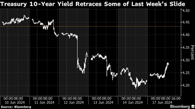 本周还将有两场美国国债拍卖加快进行,因为美国市场周三将因6月16日假期休市。通常在周三举行的20年期美债月度标售定于周二举行。5年期通货膨胀保值国债的拍卖按惯例在周四举行。