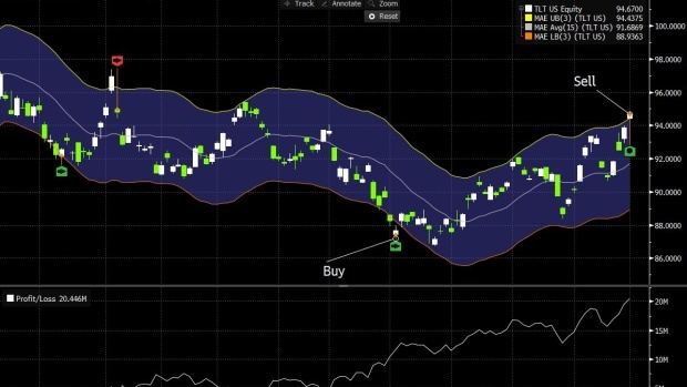 “移动平均包络线”策略今年已经在1月、2月和4月发出了3次信号,而且都实现了盈利。它在2024年的回报率约为18%,是彭博追踪的20多种使用技术指标的策略中表现最好的。这种策略的目的是在某只证券的势头变得极端时,对其进行反向押注。这种策略今年效果不错,因为美国国债随着对美联储货币政策的预期在大范围内震荡。