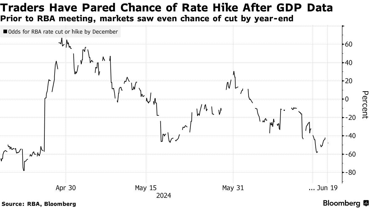 自澳洲联储上次会议以来,数据显示澳大利亚经济依然疲弱。与此同时,就业市场仍然紧张,失业率为4%。这让政策制定者们乐观地认为他们可以实现软着陆。不过,澳洲联储面临的一个未知因素是,从7月1日开始,澳大利亚将削减所得税,并向1040万户家庭减免电费。经济学家表示,这些措施将有助于提振疲软的经济。Michele Bullock本月表示,她预计这些措施不会对澳洲联储的通胀预测产生实质性影响。