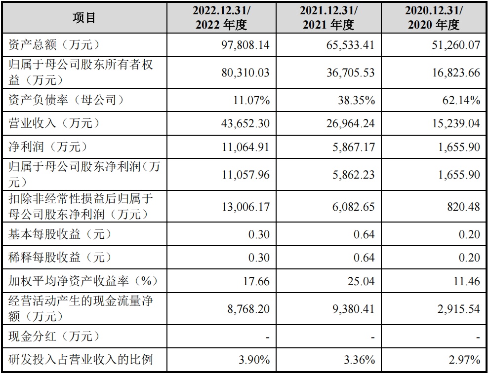 财务方面,公司于2020年、2021年、2022年分别实现营收约1.52亿、2.7亿、4.37亿人民币,净利润分别约为1655.9万万、5867.17万、1.11亿人民币。