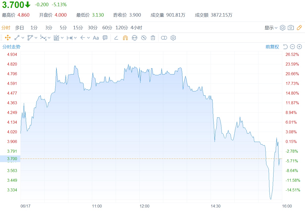 6月17日,喆丽控股早盘以近3个点的涨幅走红,随后股价不断走高,股价一度涨超23%,谁料午盘后情形直转向下,由红翻绿,尾盘时分甚至跌超17%,截止收盘股价下跌5.13%至3.7港元,振幅高达44.36%,犹如坐上了“过山车”一般。翌日,其股价又仿佛坐上了。早盘时分一度涨超10%,尾盘时分又由涨转跌,收跌8.11%,报于3.40港元。