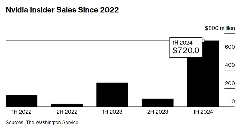 根据Washington Service汇编的统计数据,今年到目前为止,英伟达高管以及董事成员已经抛售大约77万股英伟达股票,价值超过7亿美元,这还不包括该公司6月10日以1拆10比例股票分拆带来的影响。根据Washington Service的最新数据,这是自2023年前六个月以来,以半年为基准的情况下最大规模的减持幅度,当时约有84.8万股被抛售。