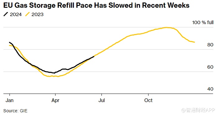 最近几周,欧盟补充天然气库存的速度有所放缓