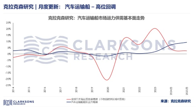 中国车企在海外建厂趋势愈发显著,全球经济脆弱性也将导致消费者购买潜力下降,这些因素或将限制全球汽车海运贸易增长。克拉克森研究初步预计明年全球汽车海运车贸易量增速放缓至2.5%,而车海里贸易对比今年高位增长将下降3.5%。