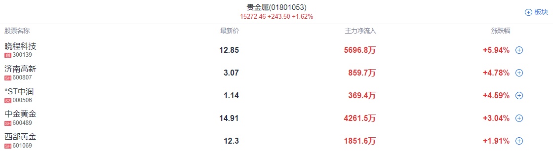 贵金属板块盘中拉升,盛屯矿业封板。