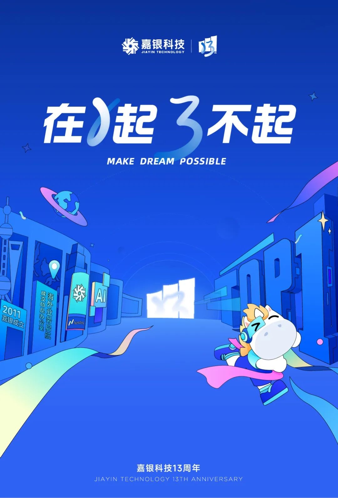 我们热烈祝贺嘉银科技(JFIN.US)迈入13周年的重要里程碑!13年的风雨坎坷,13年的传承跨越,13年的并肩携手,成就了嘉银科技的今天,留下了一路成长的印记。回望过去,每一次突破,每一步前行,都离不开我们每一位嘉银人的智慧和汗水;展望未来,我们将继续携手并肩,聚势同心,以科技驱动数字梦想。值此佳日,谨向长期关心和支持嘉银科技成长与发展的各界朋友、全体嘉人,致以崇高的敬意和诚挚的感谢!