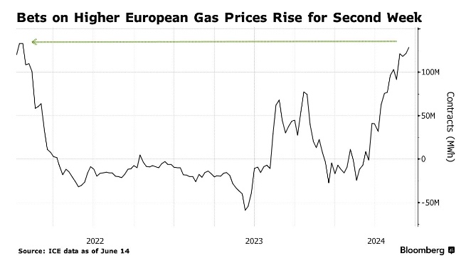 根据美国洲际交易所公布的数据,投资基金持有的基准荷兰天然气期货净多头头寸连续第二周上涨。对价格上涨的押注接近2022年1月以来的最高水平,也就是俄乌冲突爆发扰乱市场的前一个月。