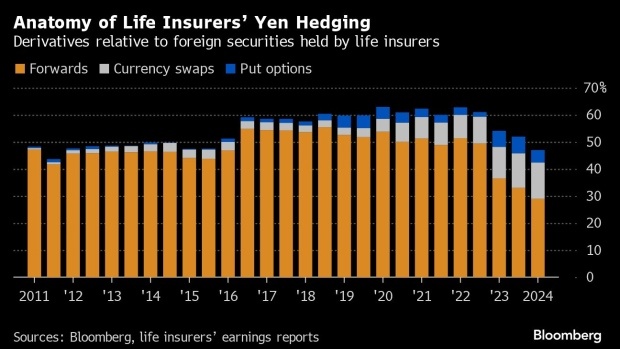 东京瑞穗证券首席策略师Shoki Omori表示:“除非美元对日元大幅贬值,否则寿险公司可能会继续持有未对冲的外国债券。”