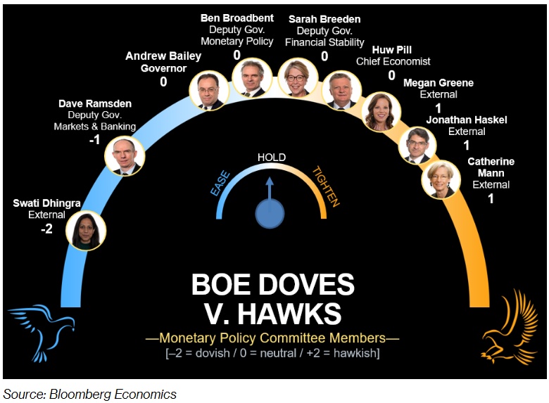这是副行长本·布罗德本特的最后一次会议,Bloomberg Economics预计继任者克莱尔·伦巴德利作风将更为鹰派。