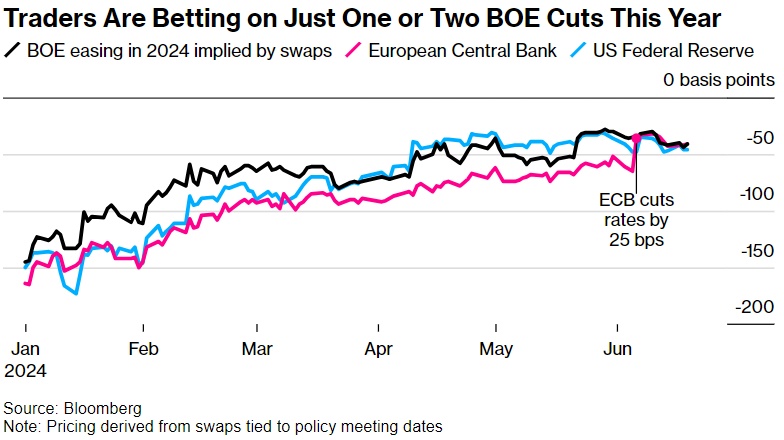 在7月4日大选前夕,官员们一直保持沉默,以免出现政治干预迹象,这使得投资者对如何解读最新数据知之甚少。这一决定将受到密切关注,以寻找官员或于何时采取行动的迹象,以及英国央行8月发布的预测或将如何演变。