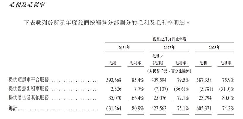 2023年,嘀嗒出行毛利润同比增长41.6%,而毛利率则由2022年的75.1%小幅下降至2023年的74.3%。其中原因主要是,技术基础设施和安全措施增强,导致运营和维护服务费用增加,保险成本增加,以及与聚合平台合作导致支付聚合平台服务费增加等。