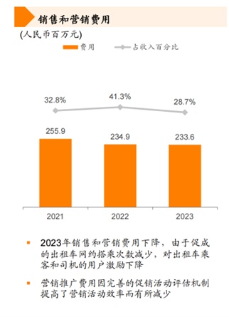且2021年至2023年,嘀嗒出行的销售和运营费用规模逐年降低,其中重要原因是完善的促销活动评估机制提高了营销活动效率。
