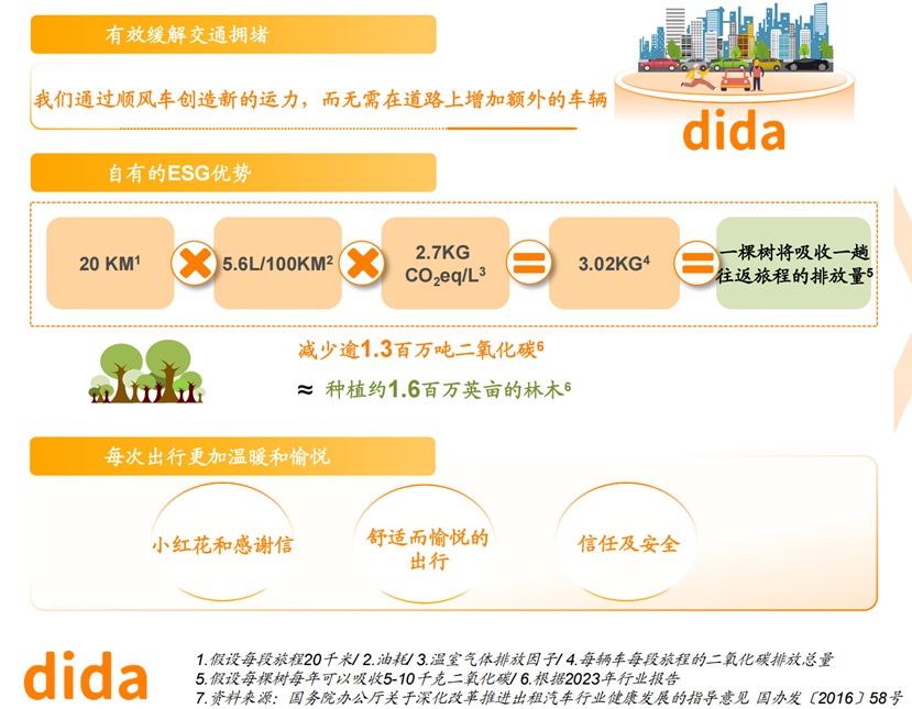 截至2023年12月31日,嘀嗒出行共协助创造5460万个未利用汽车座位的运力,相当于中国小型私人乘用车座位总数的约4.5%。而轻资产业务模式,使嘀嗒出行可以通过提升现有路上车辆的空座利用率,降低人均出行碳排放,来助力缓堵和减排。