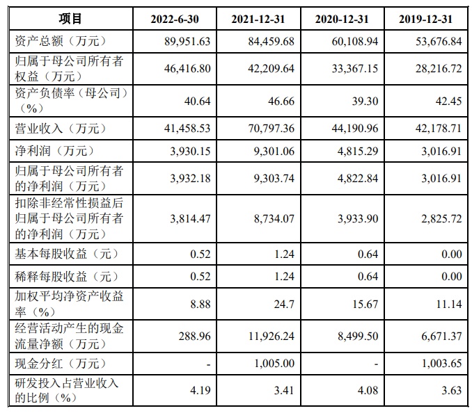 财务方面,于2019年度、2020年度、2021年度、2022年1-6月,长鹰硬科分别实现营收约为4.22亿、4.42亿、7.08亿、4.15亿元人民币;同期,净利润分别为3016.91万、4815.29万、9301.06万、3930.15万元。