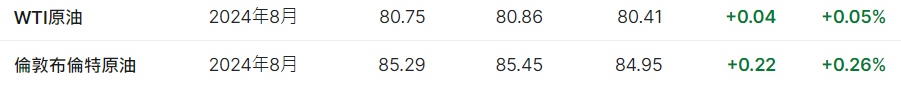 3. 截至发稿,WTI原油涨0.05%,报80.75美元/桶。布伦特原油涨0.26%,报85.29美元/桶。
