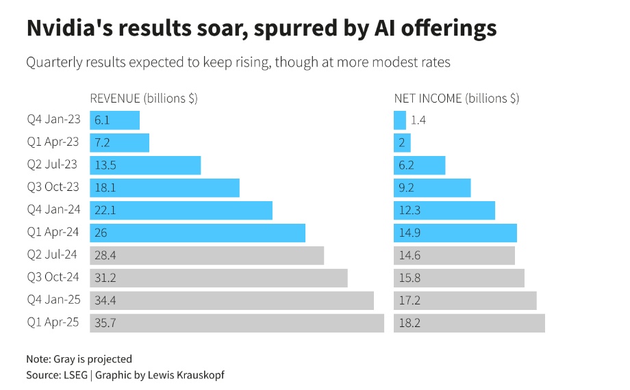 在5月下旬,被高盛予以“地球最重要股票”称号的AI芯片霸主英伟达“又双叒叕”公布了令全球投资者震撼的无与伦比业绩,可谓打消人们对人工智能相关企业支出放缓的担忧情绪。英伟达再度以一己之力全面强化科技股投资者们的“AI信仰”,因此带动美股科技股持续上涨,同时也助力英伟达股价开启新一轮疯狂涨势,不断创下令投资者震撼的历史新高点位。