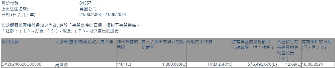 智通财经APP获悉,香港联交所最新资料显示,6月18日,董事长兼首席执行官吴泽源增持美图公司(01357)100万股,每股作价为2.4815港元,总金额为248.15万港元。增持后最新持股数目为5.75亿股,最新持股比例为12.67%。