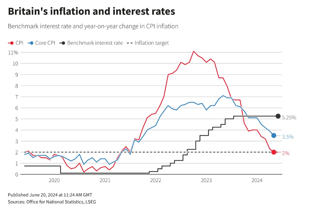 投资者们现在普遍认为,降息举措将大幅提振英国经济,同时投资者者们预计对于英国股市而言相对友好的反对党工党派人士将在7月4日的英国大选中获得压倒性胜利。工党声称,该党将能够带领英国重建经济增长,并谨慎地管理英国负债累累的财政体系。