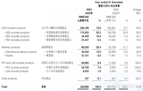 通路类产品在2022年与2023年分别占同期收入的21.7%及20.4%,主要包括封堵器介入输送装置及圈套器,主要与先天性心脏病封堵器产品有关;其他种类产品对整体收入贡献较低。