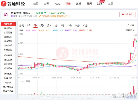 随着英伟达成为全球市值最高上市公司的消息传出,一家英伟达概念股栢能集团(01263)也悄然走出惊人涨幅。6月14-20日五个工作日期间,公司股价从3.28港元最高触及5.38港元高点,涨幅达到64%。