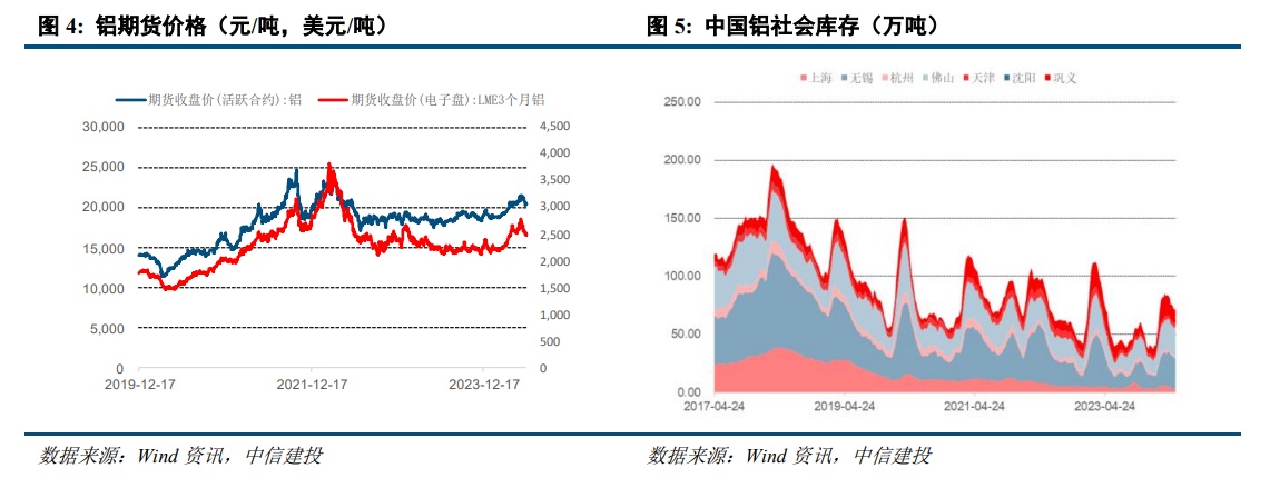 工业金属:本周LME铜、铝、铅、锌、锡价格变化为-0.9%、-0.4%、1.6%、2.4%、1.3%;工业金属价格由“金融属性”及“商品属性”共同决定,从金融属性来看,5月1日,美联储表示将联邦基金利率目标区间维持在5.25%至5.5%的水平不变,符合市场预期,美联储加息已接近尾声;从商品属性来看,全球铜铝库存均处于相对低位,中国经济复苏可期,叠加新能源行业的拉动,铜铝需求增长预期大幅好转。